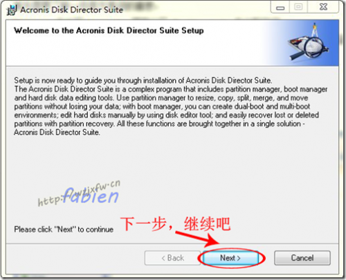 1、安装:Acronis Disk Director Suite 10.0的安装,中间让输入注册码,输入后一直下一步完成安装,然后会提示是否启动计算机,点击确定重新启动。针对有些英文不是很好,对电脑不熟悉的朋友,大家还是跟着fabien一起往下看截图和分步讲解吧。
