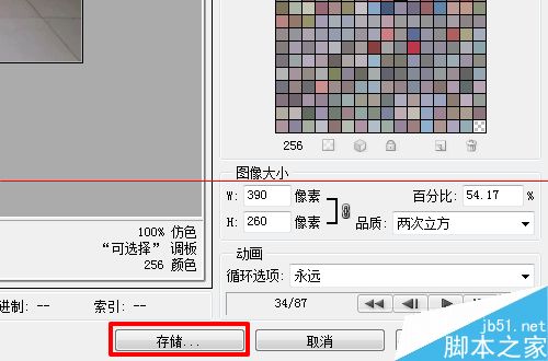 4、如果嫌gif图片太大,可以调整“图像大小”下面的像素值。“动画”下是循环选项,一般我们把它设置成“永远”。