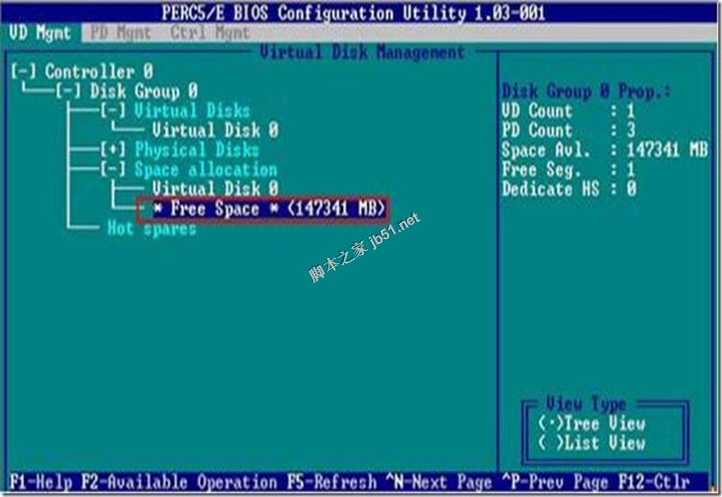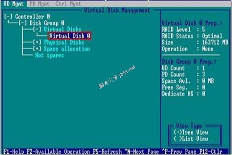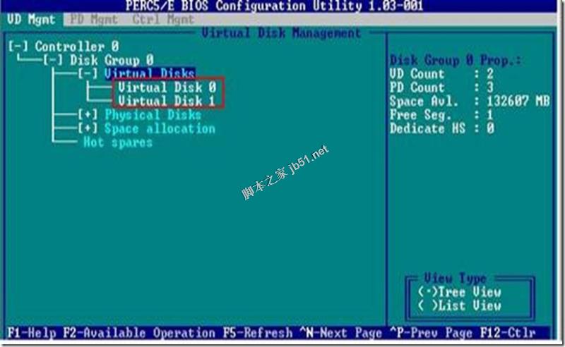 9、在此界面,将光标移至图中Virtual Disk 0处,按F2键可以展开对此虚拟磁盘操作的菜单。