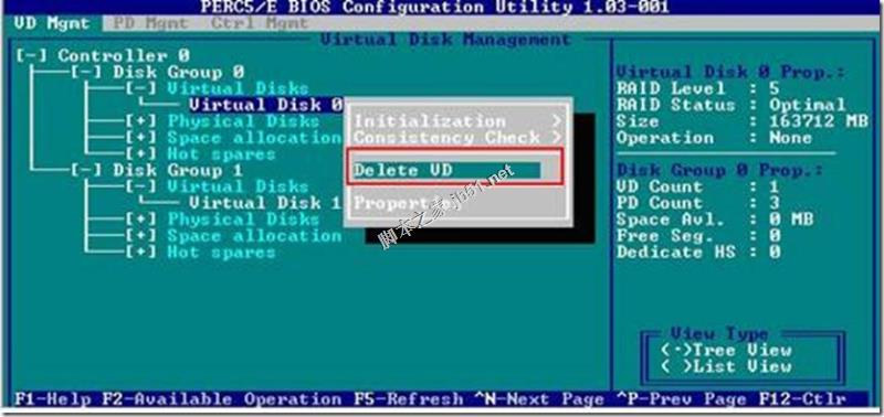 1、将光标移至要删除的虚拟磁盘处,按F2,选择Delete VD按回车继续