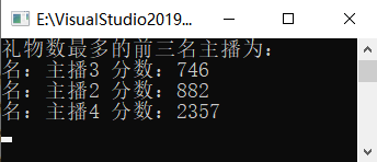Console.WriteLine("礼物数最多的前三名主播为:");