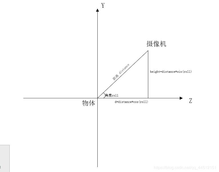 所以根据三角关系可以求得映射在xz平面的距离d为distancecos(rool),相机高度为distancesin(roll)。