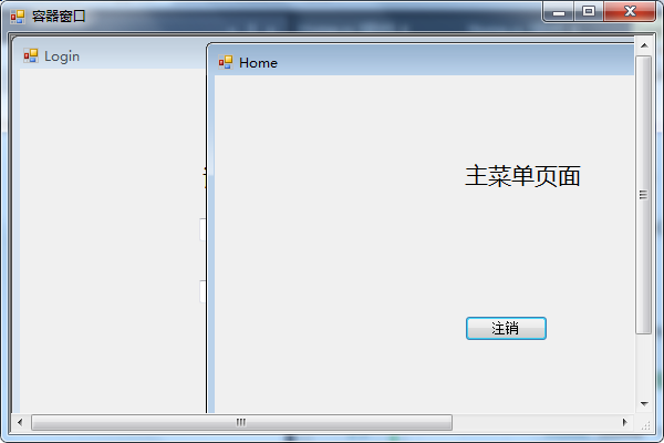 这种方式的实现与MDI的方式类似,我们先创建UC_Loging和UC_Home两个自定义控件作为子页面;然后创建一个容器窗口Form_Container,在Form_Container中放一个Panel控件作为子页面的容器,通过将自定义控件绑定到panel实现页面切换的效果。