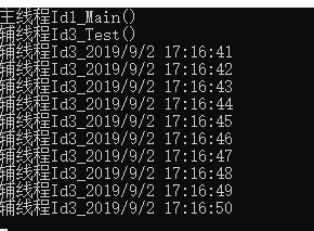 Console.WriteLine($"辅线程Id{threadId}_Test()");