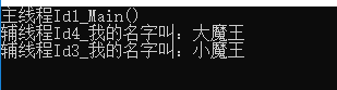 Console.WriteLine($"辅线程Id{threadId}_我的名字叫:{name}");