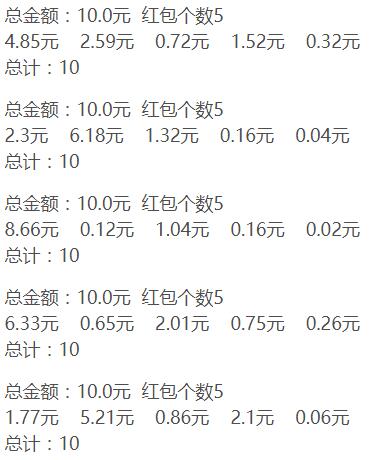 以上就是魁梧咖啡最近收集整理的关于C#实现拼手气红包算法的全部内容,更多相关C#实现拼手气红包算法内容请搜索靠谱客的其他文章。