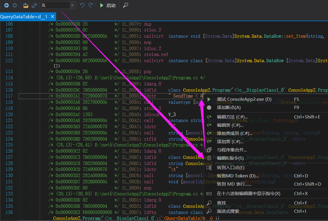 - 找到需要修改的类的 IL 代码处,右键选择 编辑IL指令