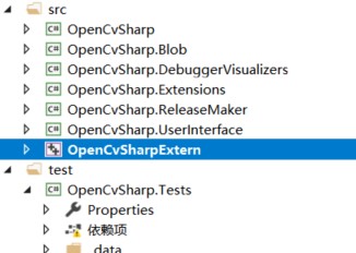 这里从结构就可以看出来,OpenCVsharpExtern是 c++代码,其他都是Csharp代码,不出所料,肯定是要做CLR封装的。它大量依赖的是341