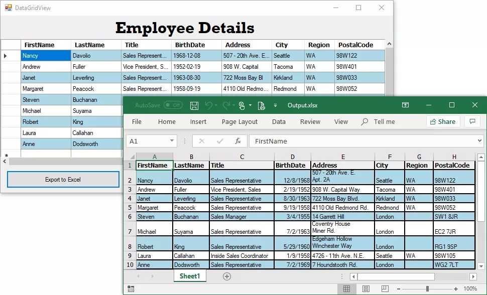 下面的代码示例演示了如何将数据从 DataGridView 导出到 Excel 工作表。