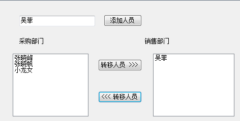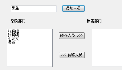 简单实现人员从部门1转移到部门2或部门2转移到部门1