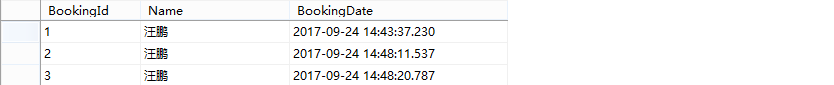 在DTC服务中,若每次提交未中止则提交数量将增加1,在我们对预约模型进行配置时,我们将主键未设置为标识列,所以在我们对主键重复的情况下再来看看表中数据。我们提交三次而预约主键不重复,在第四次时主键输入为第三次的主键,此时看看结果如下: