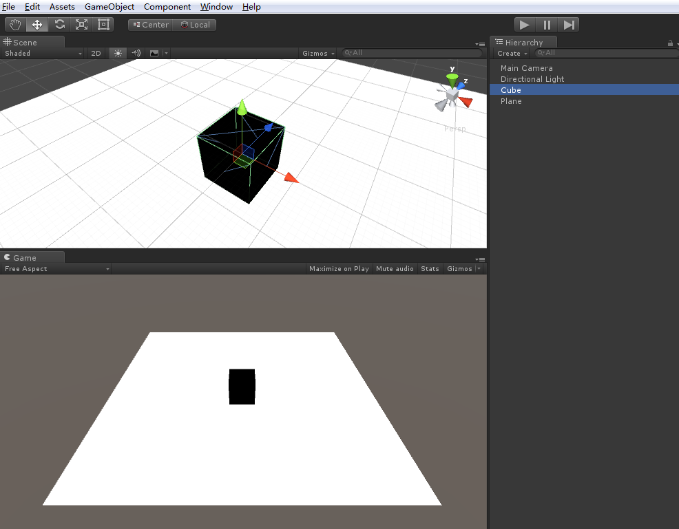 首先在场景里新建一个plane(白色)和cube(黑色) ,这个cube就是用来跟随鼠标的物体,并且给cube添加标签tile。