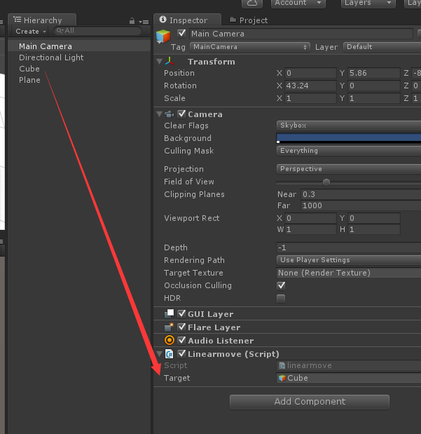 最后将cube拖脚本中的目标位置,如下图: