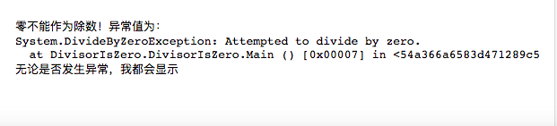 System.Console.WriteLine("无论是否发生异常,我都会显示");