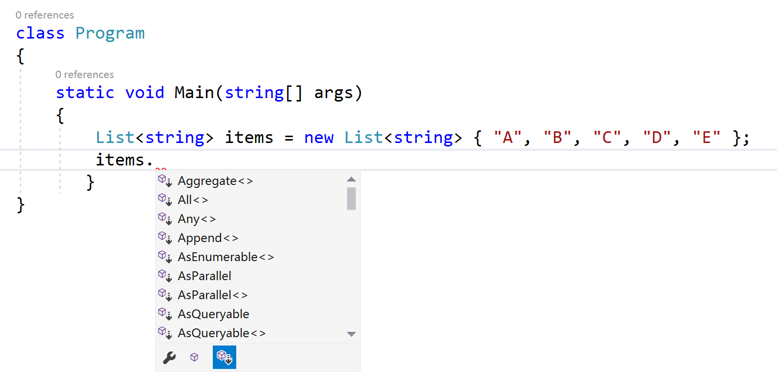 for (int i = 0; i < list. Count(); i++)