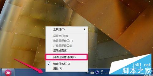 5、当然我们也可以在任务栏上单击鼠标右键,然后点击启动任务管理器!
