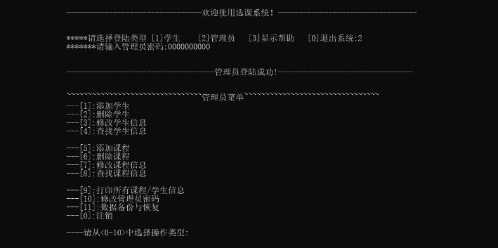 以上就是标致猎豹最近收集整理的关于C语言实现简单学生选课管理系统的全部内容,更多相关C语言实现简单学生选课管理系统内容请搜索靠谱客的其他文章。
