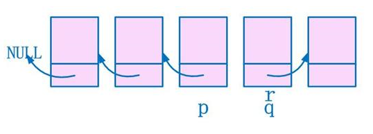 //反向:用p和q反转工作,r记录链表中剩下的还未反转的部分。