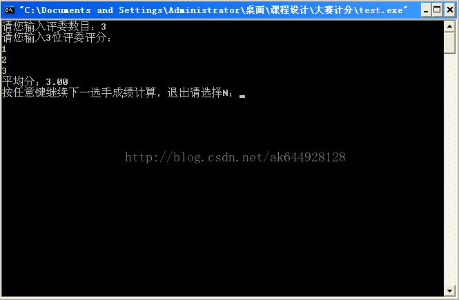 printf("按任意键继续下一选手成绩计算,退出请选择N:");