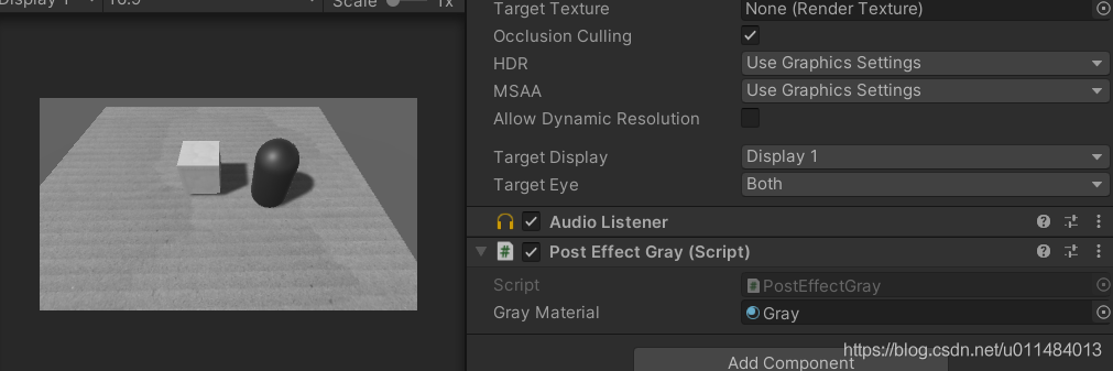场景置灰,一般采用的是对相机渲染进行设置,在相机上面添加脚本,在OnRenderImage回调方法里面,对渲染对象进行处理