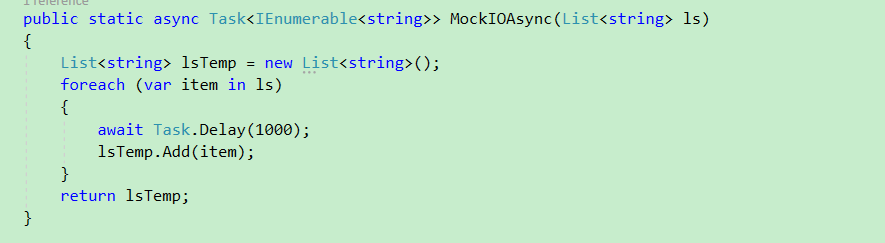 首先,我们尝试按照常规异步方法修改 MockIO 函数,增加 async 关键词,返回结果增加 Task, 内部对IO操作添加 await。