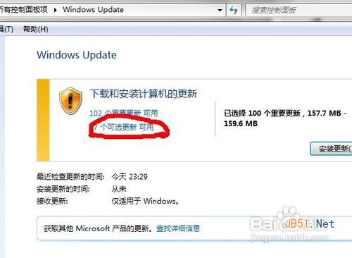 4、点击安装更新【当然,也可以在步骤三处把其他可选的和重要的更新都勾上,全部更新】,它就会自动下载更新。