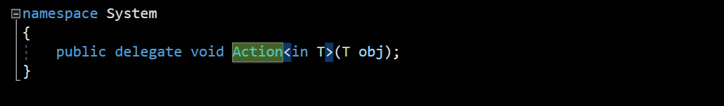除了定义不同外,创建的委托实例对于方法的绑定与执行与标准的委托相同,其实Action本来就是通过delegate来定义的一个委托类型,但是这个定义是C#系统进行定义的。