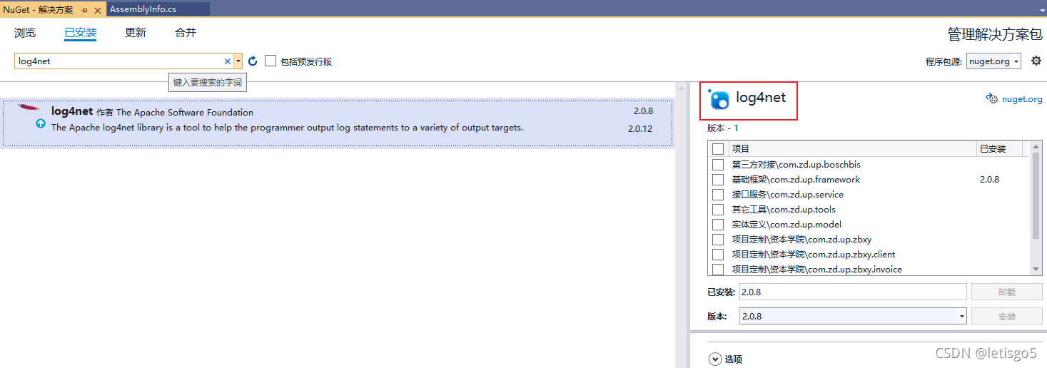 1.安装插件:安装log4net