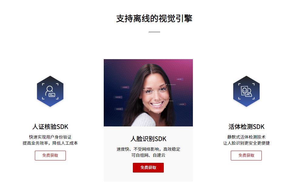 最重要的是它还支持离线识别,并且提供Android、iOS、C++、C#版SDK,现在已经升级到全新的3.0版本,支持活体识别。