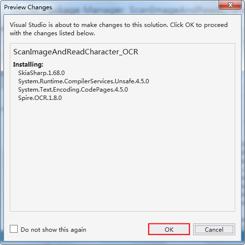 步骤3. 在VS程序中安装Spire.OCR for .NET。(★ 推荐通过Nuget安装)