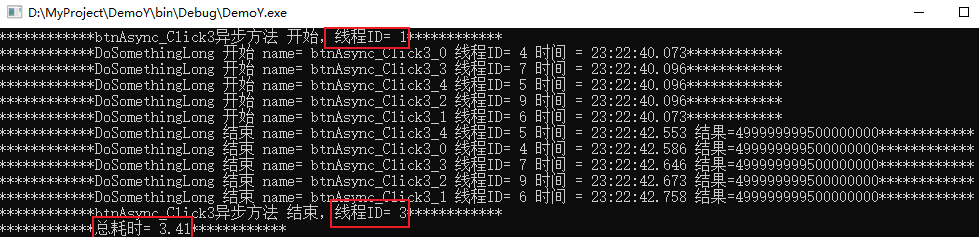 Console.WriteLine("************btnAsync_Click3异步方法 开始,线程ID= {0}************", Thread.CurrentThread.ManagedThreadId);