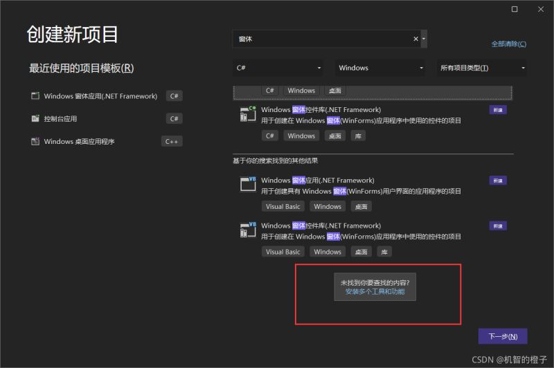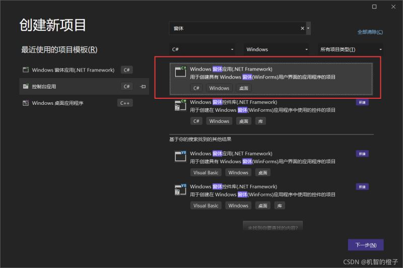 打开VS2022选择新建Windows窗体应用