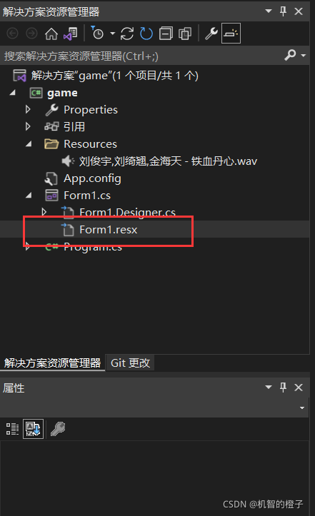 在项目结构中找到Form1.resx文件并打开
