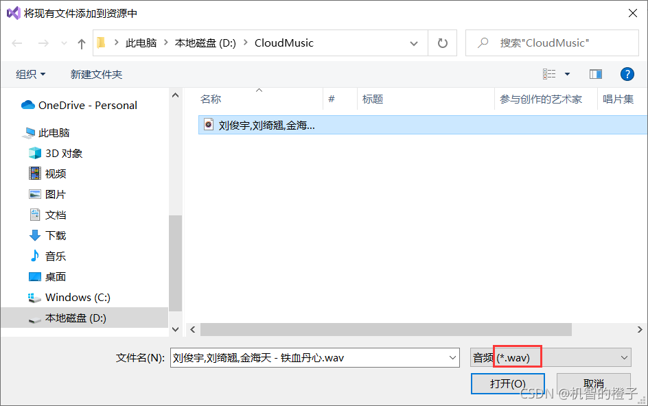 注意文件类型是.wav,这里不能简单改后缀名,要用格式转换工具进行转换。