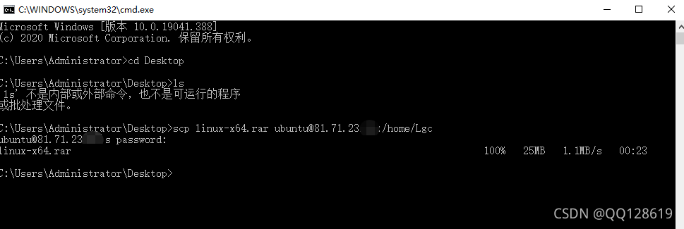 把文件放到了桌面,打开cmd利用SCP命令上传至服务器,有上传工具可以用工具上传,可以百度下载。