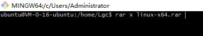 连接服务器工具我用的是Git Bash,使用ssh命令,登录解压命令用rar x linux-x64