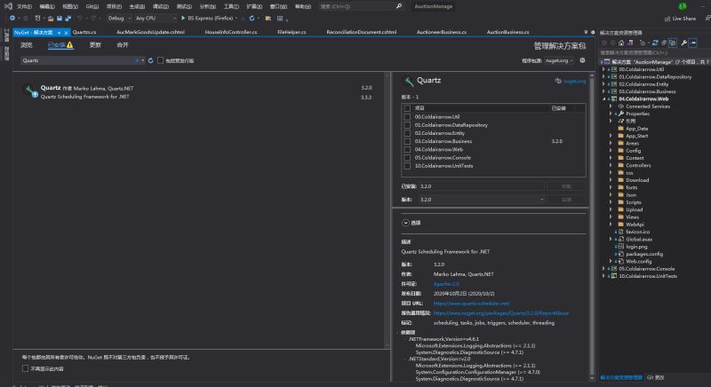 (1)第一步,通过NuGet下载Quartz.Net组件并且引用到当前工程中