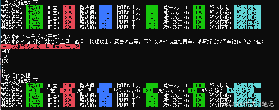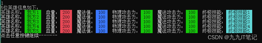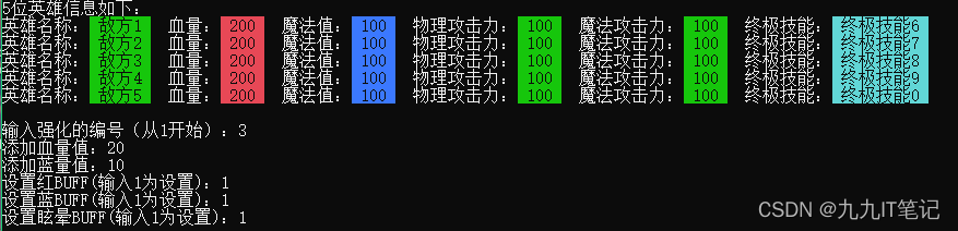 input(ours, enemy); //输入我方、敌方英雄信息(引用传递)