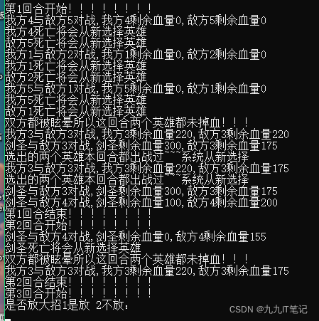 Console.WriteLine("选出的两个英雄本回合都出战过~~~系统从新选择");