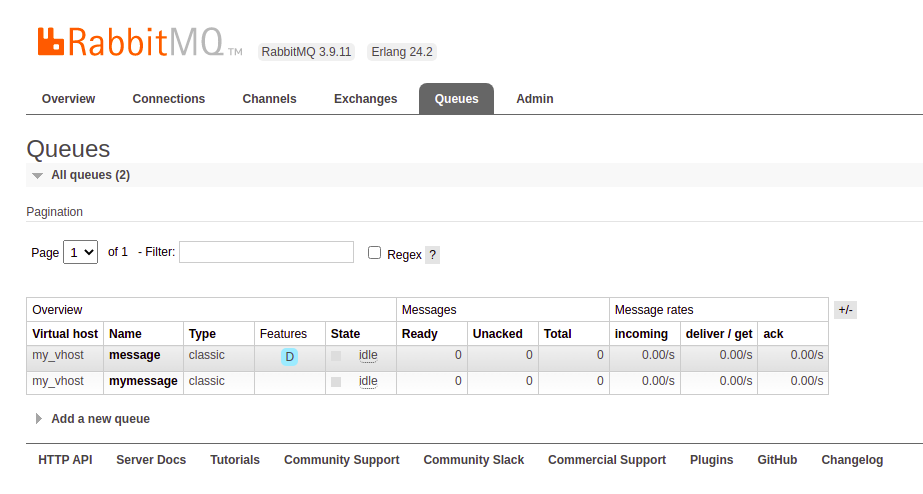 docker run -d --hostname myRabbit --name rabbitmq3.9.11 -e RABBITMQ_DEFAULT_USER=admin -e RABBITMQ_DEFAULT_PASS=admin RABBITMQ_DEFAULT_VHOST=my_vhost -p 15672:15672 -p 5672:5672 rabbitmq3.9.11:management