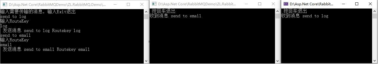 Console.WriteLine(" 发送消息 {0} Routekey {1}", message, routekey);