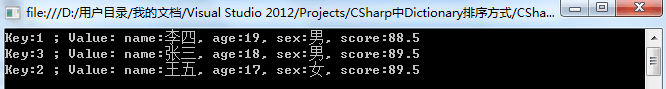 //上面dic1.Add()故意不按照顺序