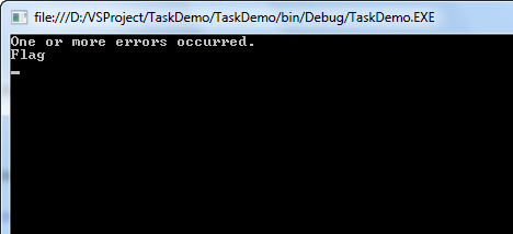 这里用了AggregateException,就是异常集合,当然开发中不会只有一个线程,肯定会有多个线程,多个线程就可能有多个异常。我们变量异常集合,输出异常信息,如下图: