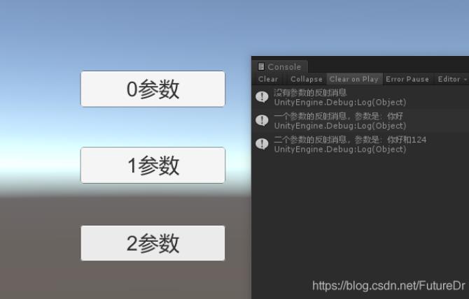 Debug.Log("没有参数的反射消息");