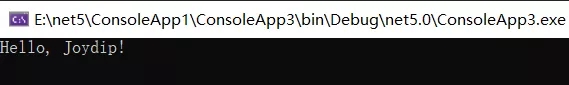 程序跑起来后,控制台将会输出:Hello, Joydip!