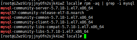 f)查看安装的mysql版本:rpm -aq | grep -i mysql