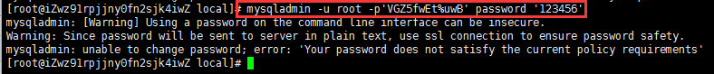 这里更改密码出了问题,更改失败,这是因为密码太过简单的原因。有两个接解决方法: