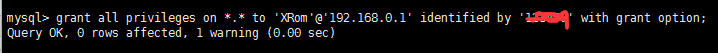 增加一个用户给予访问权限:grant all privileges on *.* to 'root'@'ip地址' identified by '密码' with grant option; //可将ip改为%%,表示开启所有的