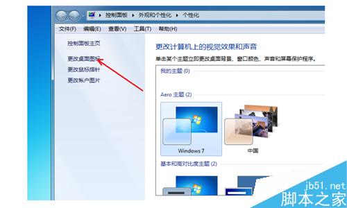 2.出现功能框,找到,更改桌面图标,单击一下。