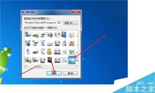 4、出现更改图标功能框,选择自己喜欢的图标,选中,单击确定。